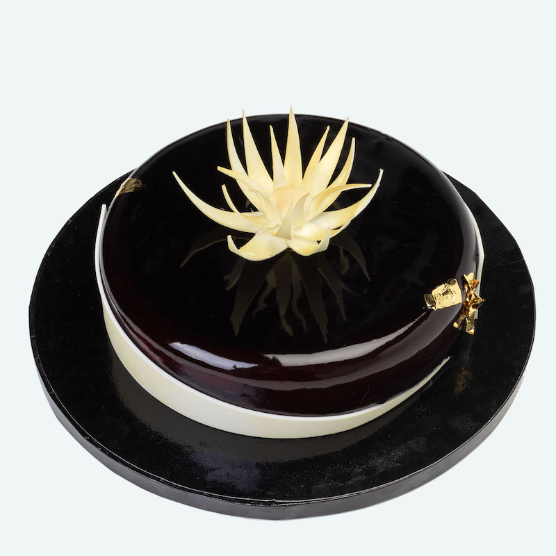 Cold application glaze (cocoa). Ready-to-use and ideal for pastry finishing.