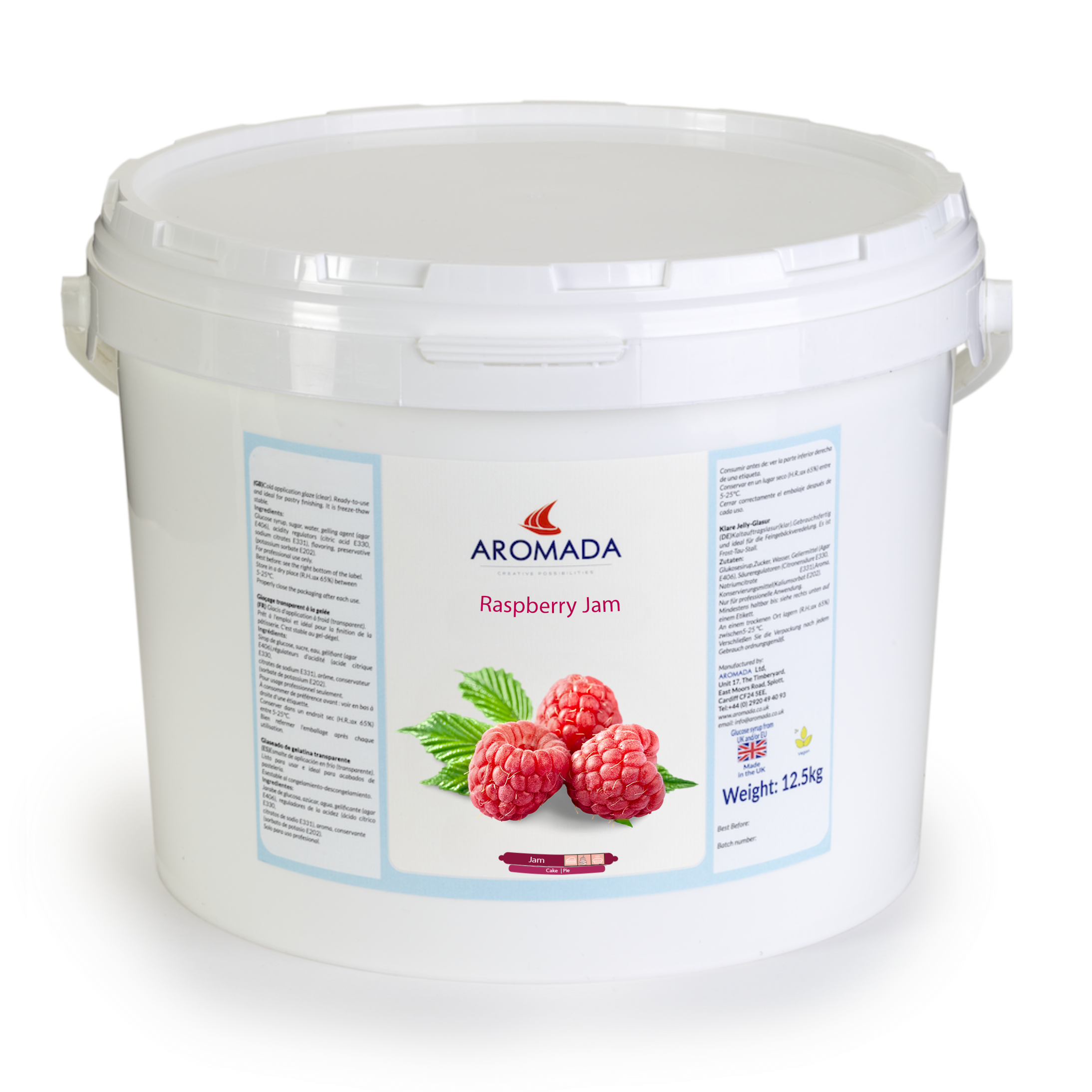 Our premium Raspberry Jam, available in a generous 12.5kg bulk size, is crafted specifically for professional cake shops, patisseries, and bakeries. Made from the finest, sun-ripened raspberries, this jam offers a rich, vibrant flavour that balances sweetness with a natural tartness. Its smooth, spreadable consistency is ideal for a variety of baking applications, including layering cakes, filling pastries, glazing desserts, and enhancing tarts.